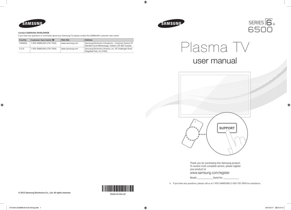 SAMSUNG PN60E6500EFXZA USER MANUAL Pdf Download ManualsLib