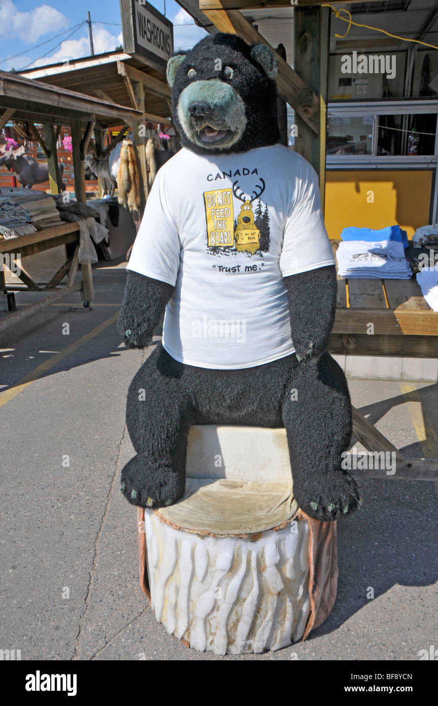 Stuffed Bear Outside Agawa Crafts and the Canadian Carver on Highway 17 Pancake Bay Ontario