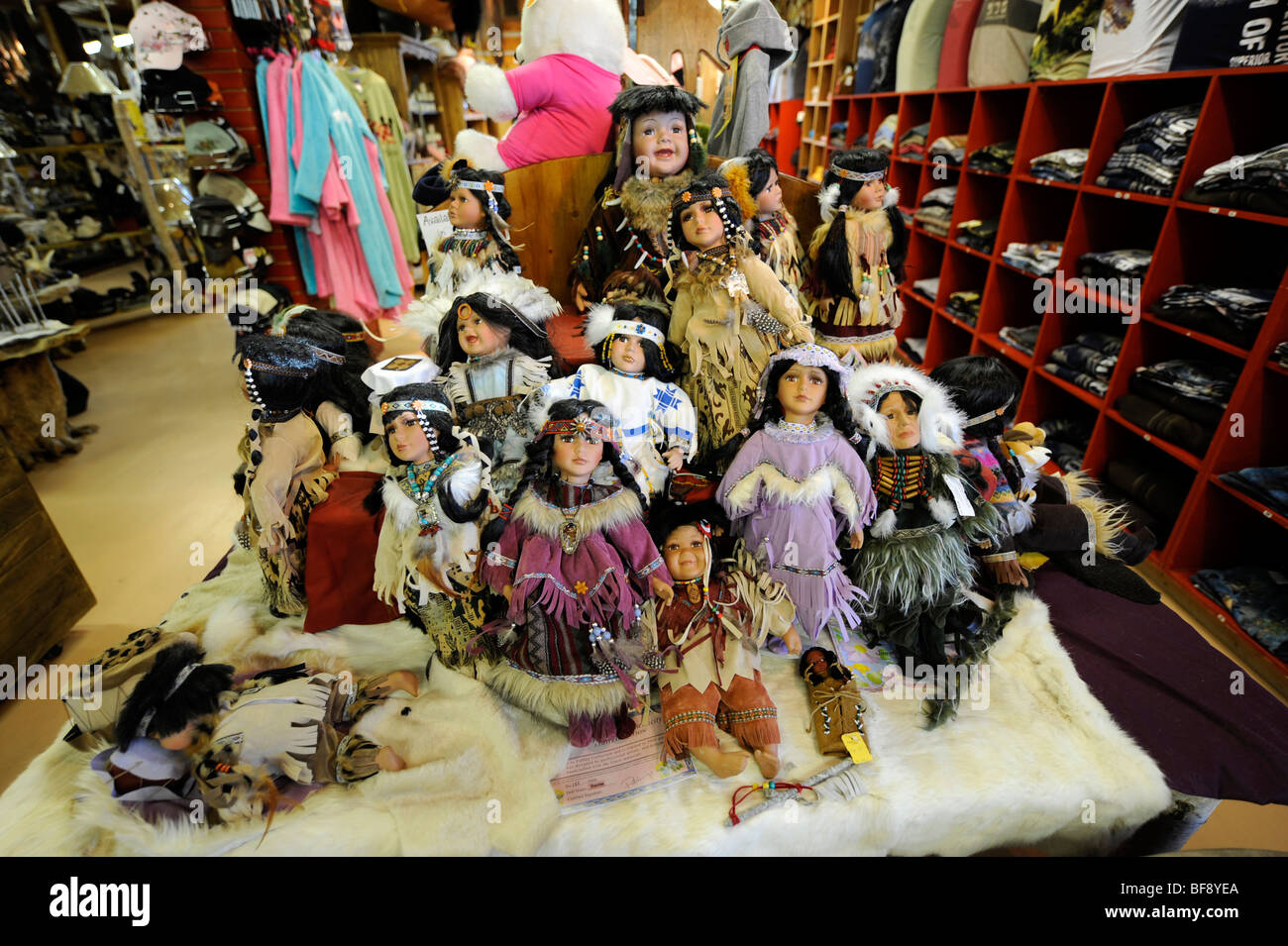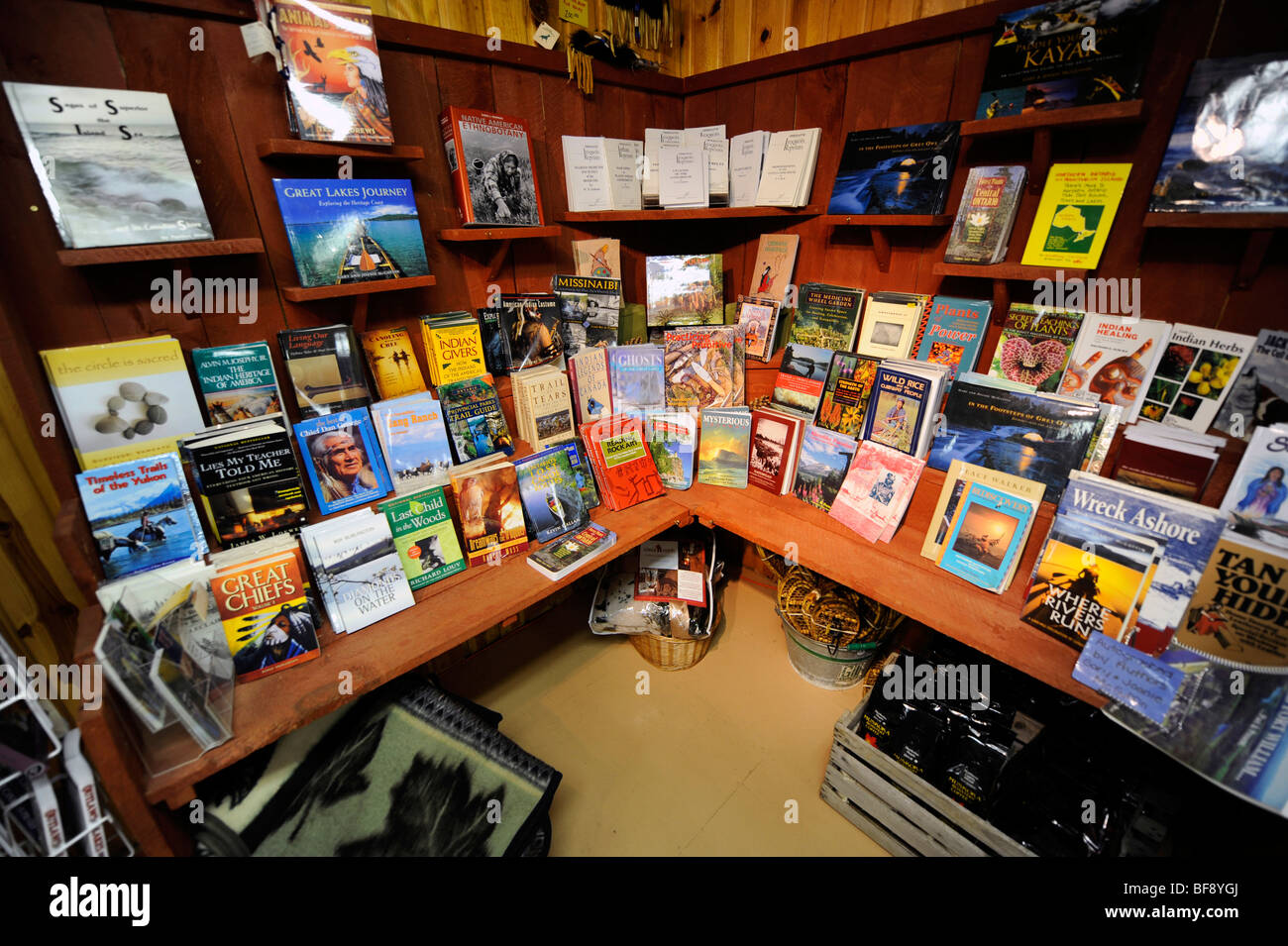 Book Display in Agawa Crafts and the Canadian Carver on Highway 17 Pancake Bay Ontario Canada