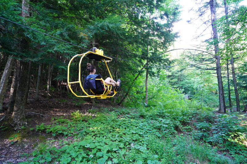 Coût : 50 $ par adulte. Adresse : Au Diable Vert - 169, ch. Staines, Glen Sutton, QC. Pourquoi tu dois y aller : Un vélo. qui vole à travers la forêt, quelle activité inusitée à essayer! Tu auras une vue privilégiée au-dessus de la cime des arbres aux feuilles colorées.