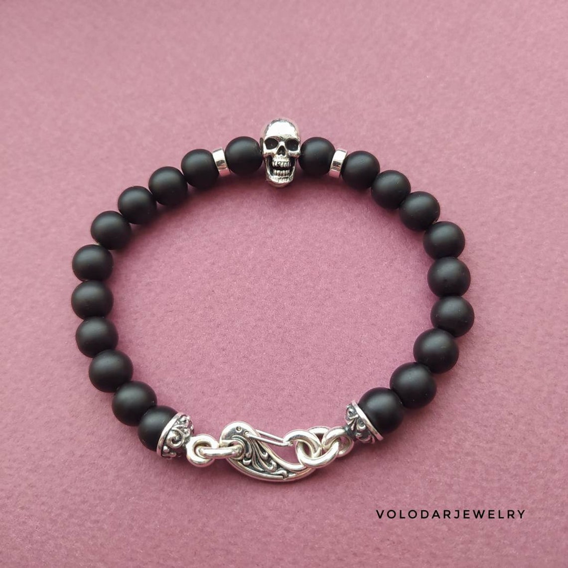 Black bead bracelet Silver bead bracelet Skull bead bracelet Etsy
