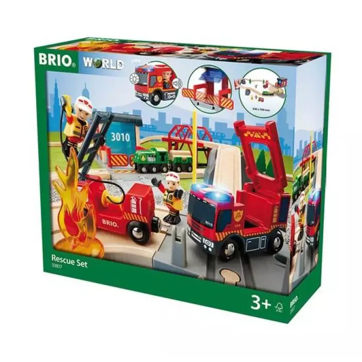 Brand: Brio Color: Multicolor Features: Assemble the Rescue Team for an action-packed adventure in this emergency services themed 36025 Rescue Team Train Set. Large train set that features exciting railway play across multiple levels with rescue-themed buildings, vehicles and characters.