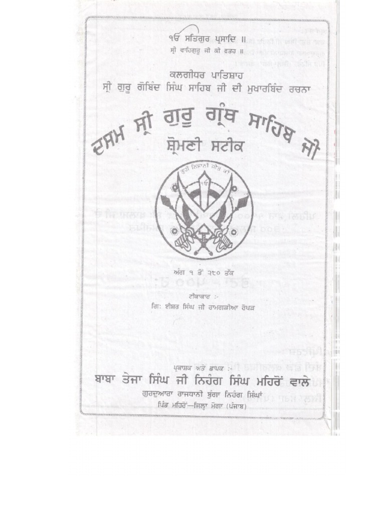 Sri Dasam Granth Teeka 01 Bookreader Item Preview. Pdf_module_version 0.0.17 Ppi 96 Scanner Internet Archive HTML5 Uploader 1.6.3 Year 2009 . Show More. plus-circle Add Review. comment. Reviews There are no reviews yet. Be the first one to.