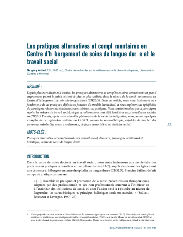 (PDF) Les pratiques alternatives et complémentaires en Centre d'hébergement de soins de longue