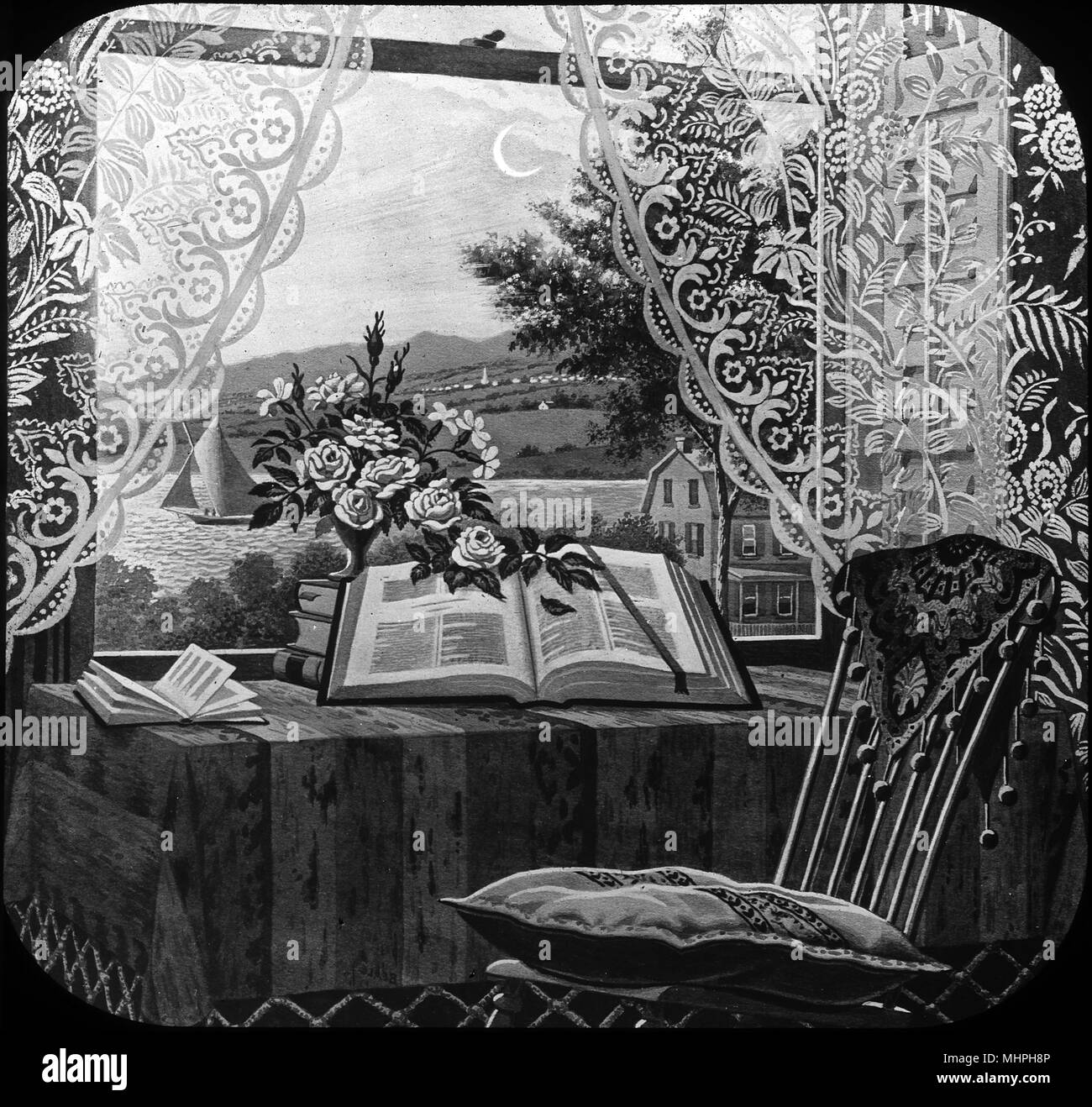 My Mother's Bible open book in window Stock Photo Alamy